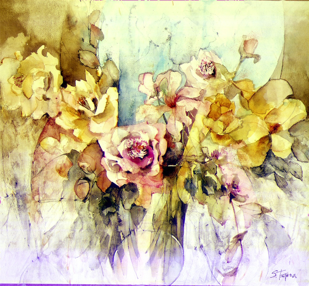 glass-vase-of-paper-flowers_0 Published April 11, 2016 at 1002 × 926 in Yes, I paint flowers, but not a lot ::)))