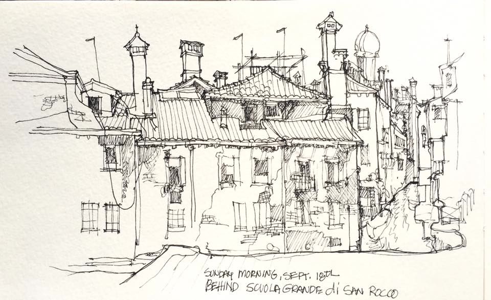 14316943_10154446982944774_1173576370570404504_n Published November 23, 2016 at 960 × 586 in Sketching in Italy, Fall 2016 Our neighborhood canal view behind Scuolo Grande di San Rocco
