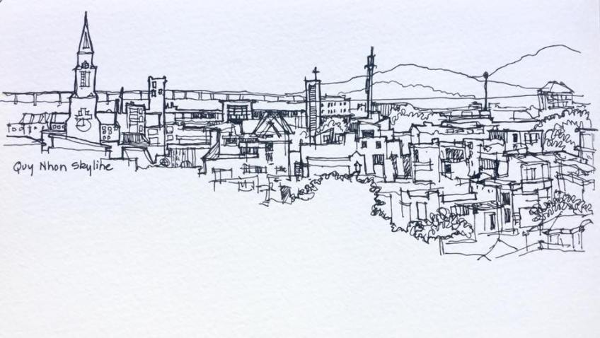 Qu’y Nhon, from our hotel window Published September 27, 2019 at 960 × 542 in Sketching in Vietnam, November 2017