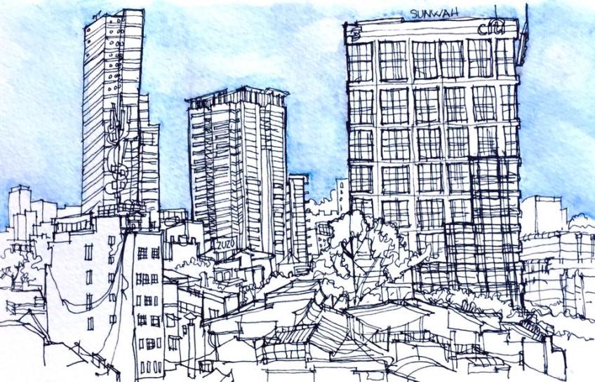 view from Ho Chi Minh City hotel window Published September 27, 2019 at 960 × 618 in Sketching in Vietnam, November 2017