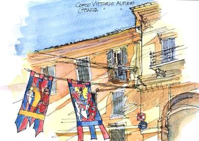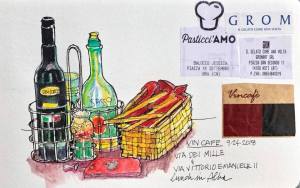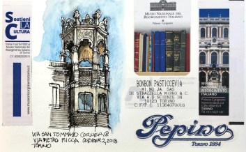 This one sketched while we sipped our capucchino, the corner of Via San Tommaso and Via Pietro Micca.