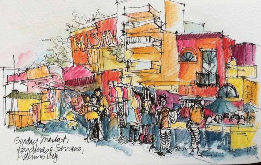 Palermo Hollywood, BsAs Published October 8, 2014 at 960 × 607 in Gallery Palermo Hollywood Market, Buenos Aires, Watercolor Pencil and Ink Pen Like Loading...