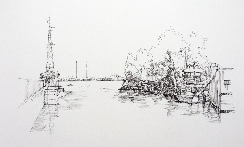 I love sketching, especially unrushed sketching with friends. P4P affords the opportunity to sketch structures and landscapes that are Buffalo treasures, especially structures that are in danger of being demolished. This small community next to the Blackrock Locks in the canal next to the Niagara River is not threatened. Good thing. It was