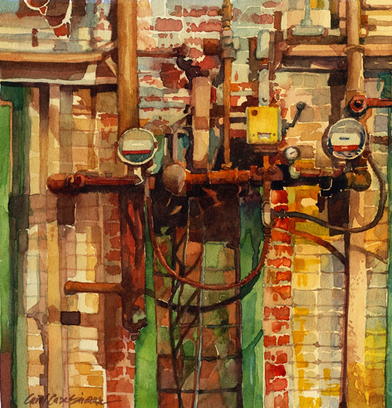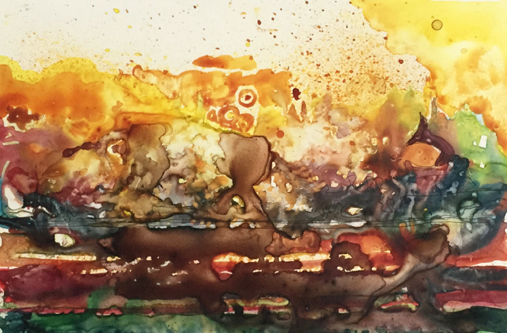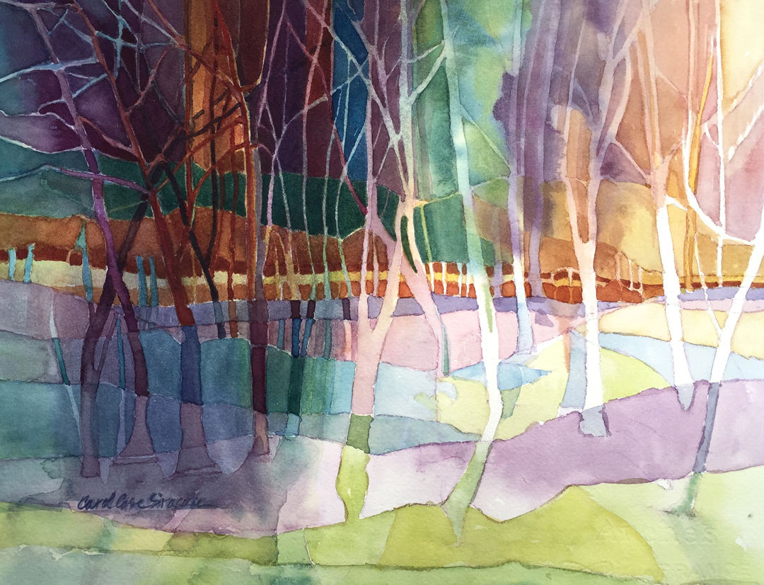Friends who know me well, and admire my paintings, have given me some good advice. They say, in one way or another, include some architecture, some neighborhood, in your paintings, even when you are experimenting.  So, these two are very recent, and include architectural elements from my home city, Buffalo. The first, “City Sunset” is the view I have as I look out of my studio across the street, almost due West, at sunset. It was accepted into the Adirondacks National Exhibition of American Watercolors which opens August 8th in Old Forge, NY. Very excited to have been juried into this terrific show.