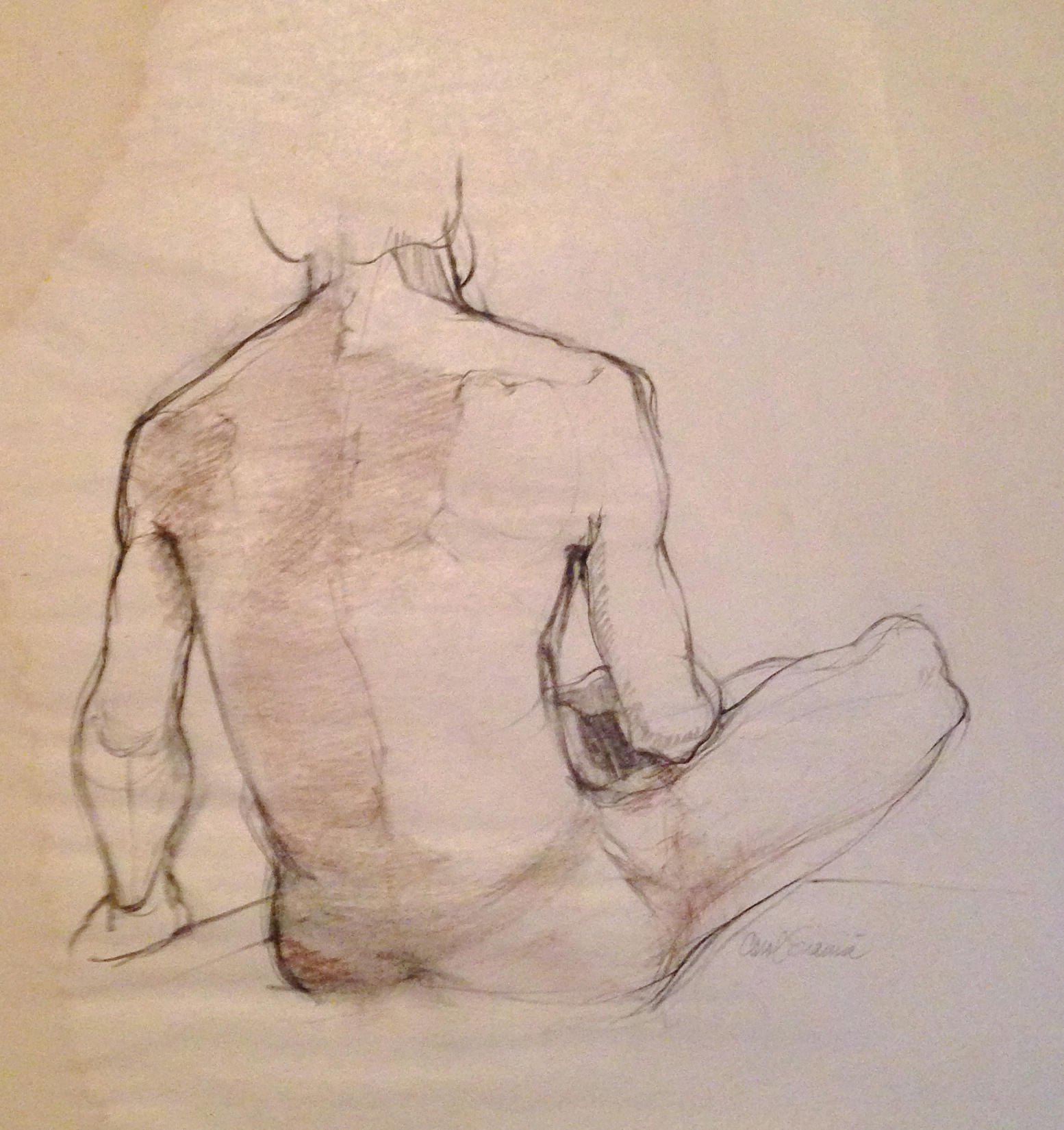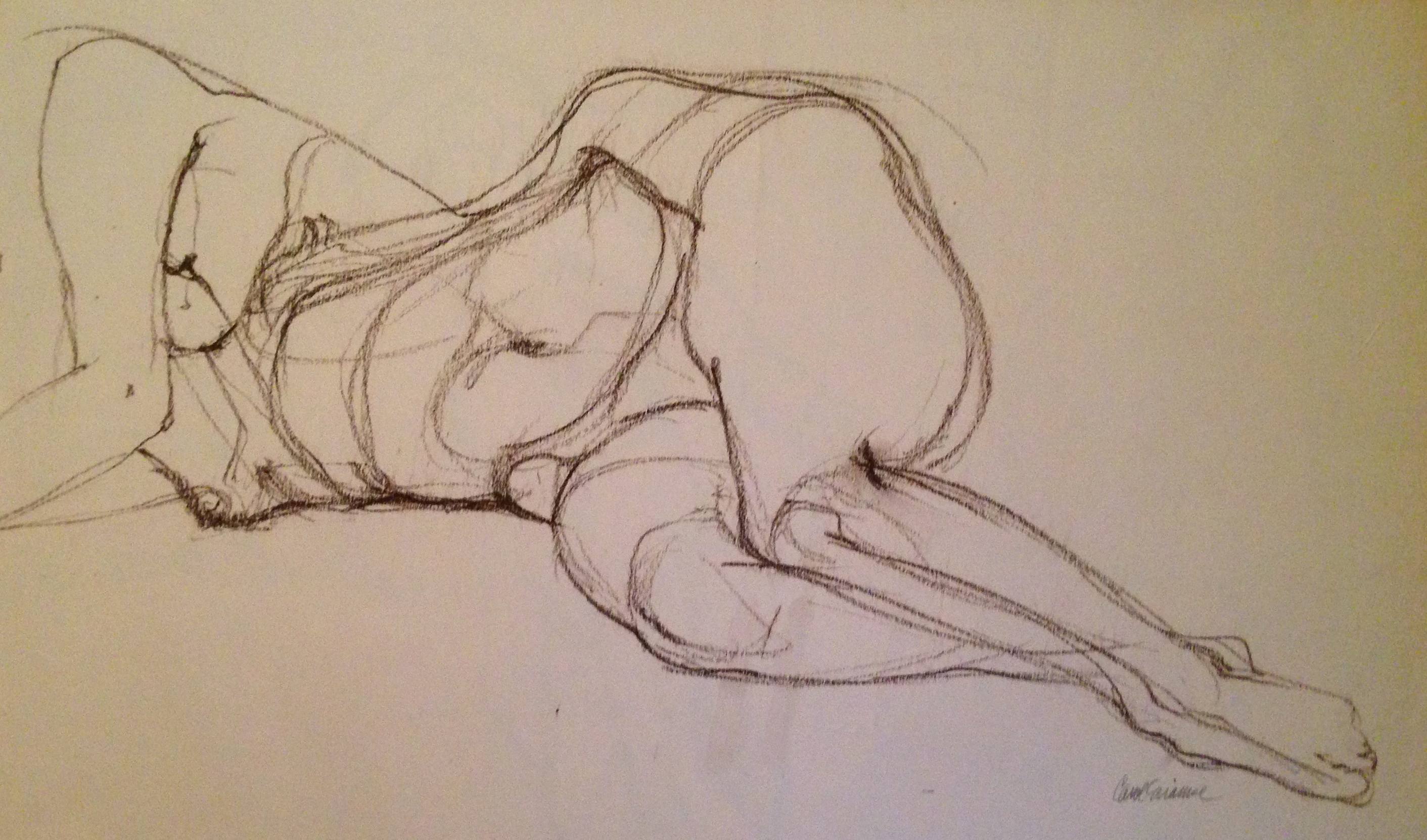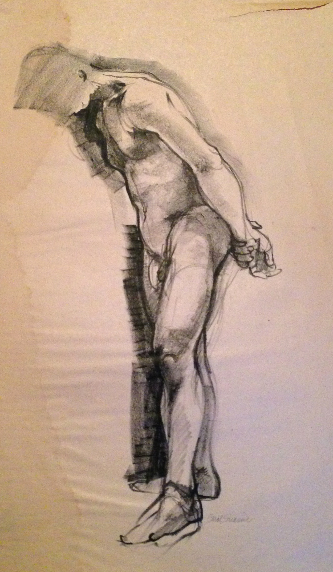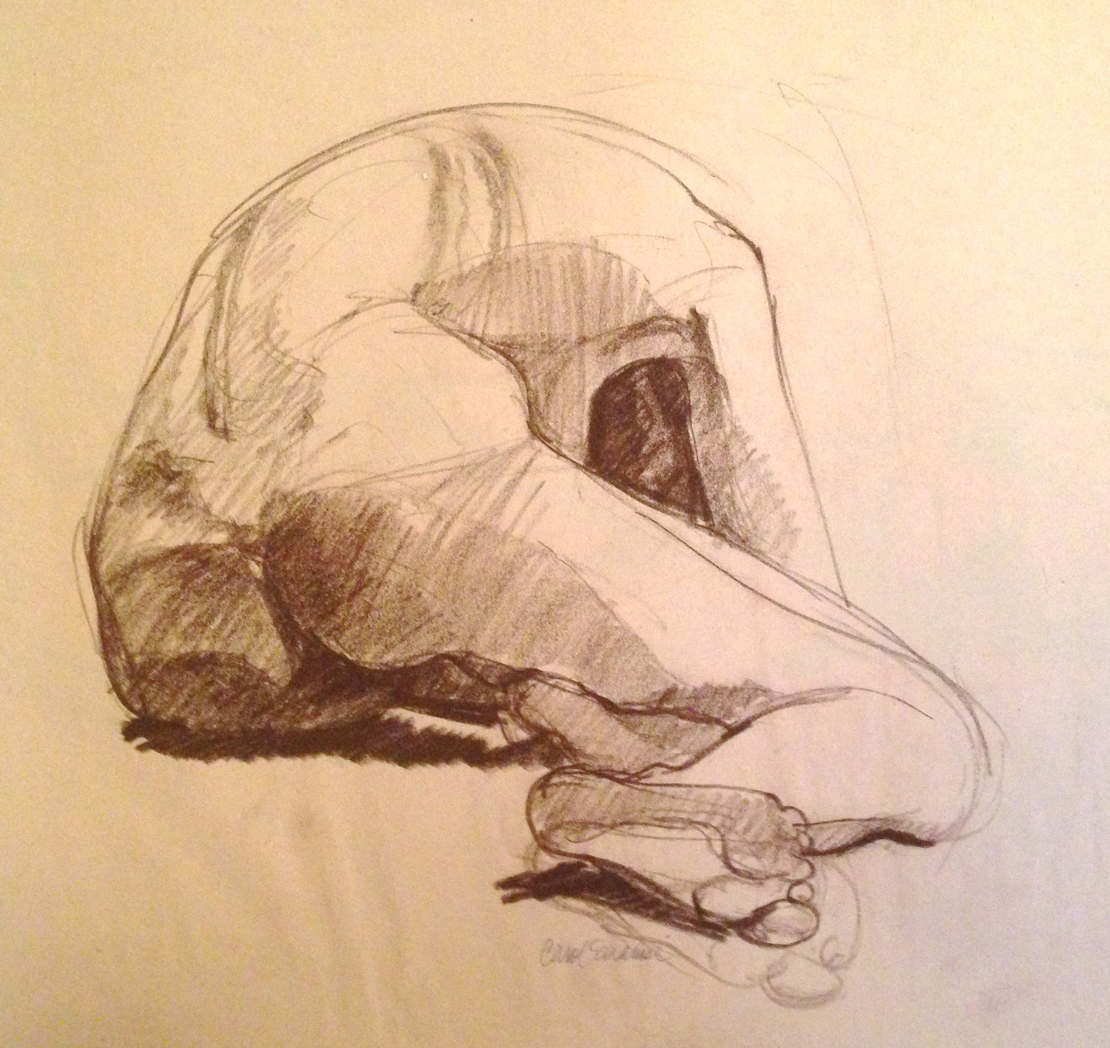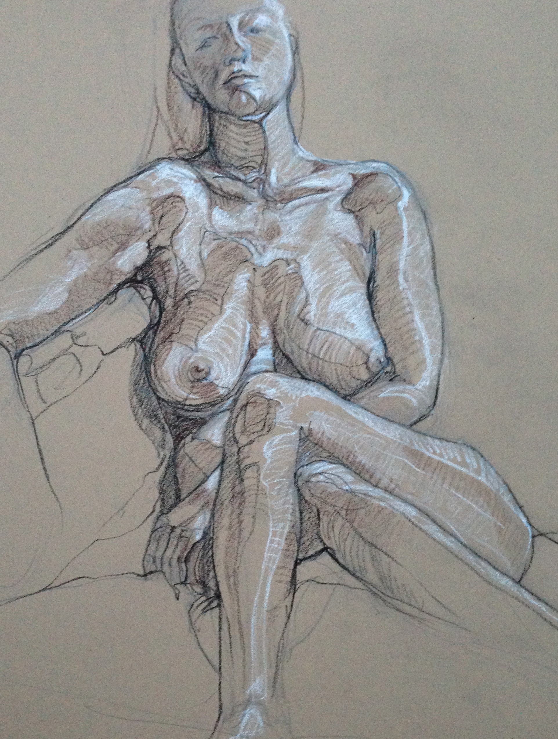 It wasn’t until this past year, in the fall, that I started with the figure again. At Sally’s suggestion, I joined a group of artists on Friday afternoons at the BAS. We rent a room, hire a model and draw and paint together. These next drawings, and paintings are from those afternoon sessions.