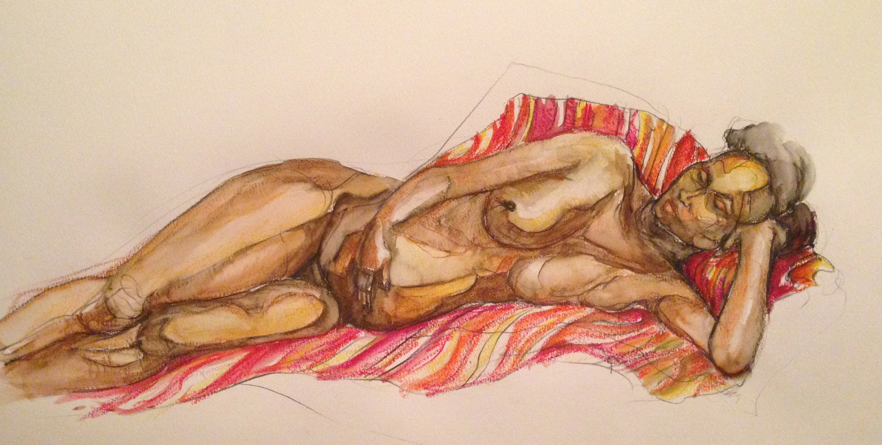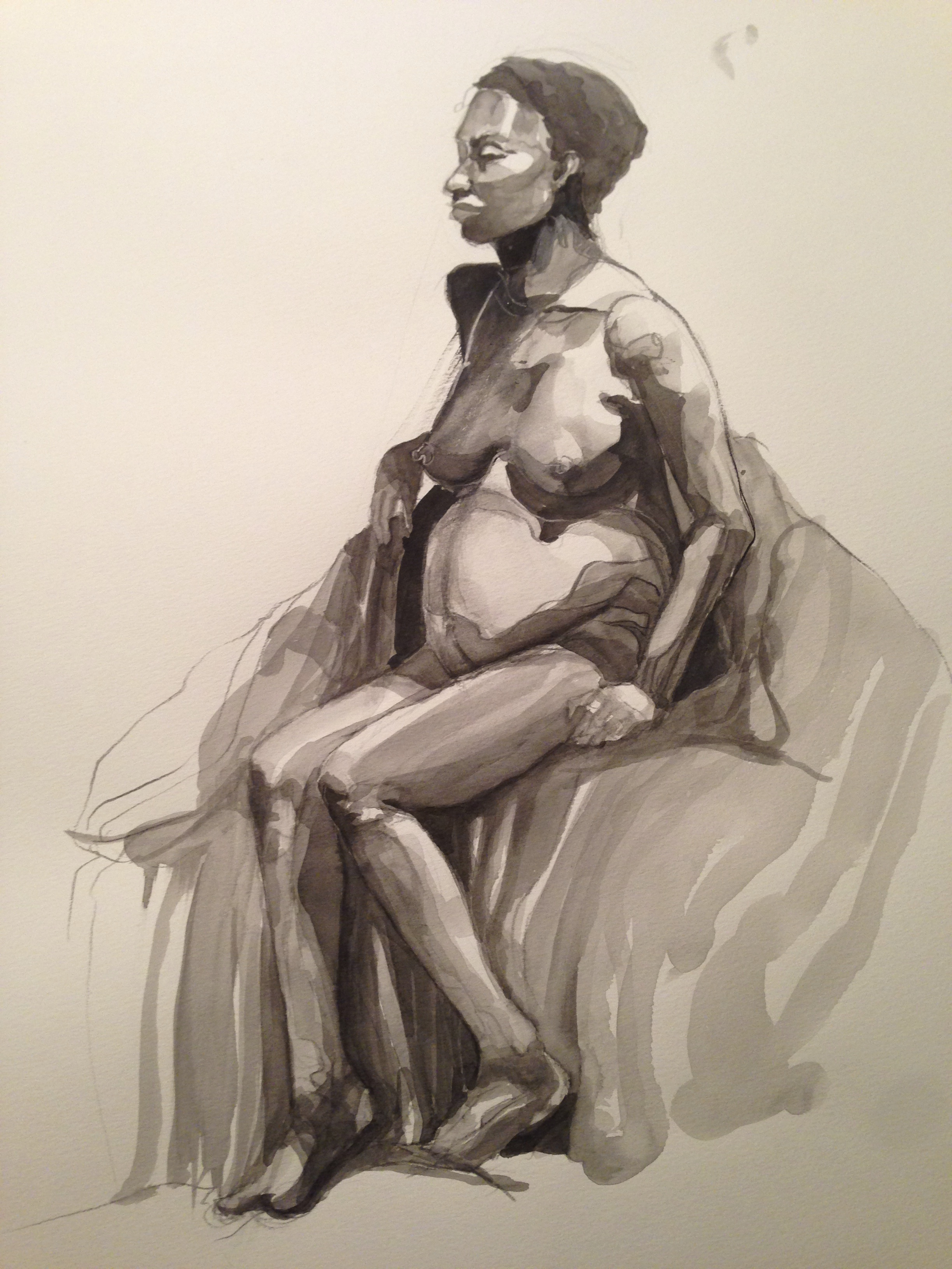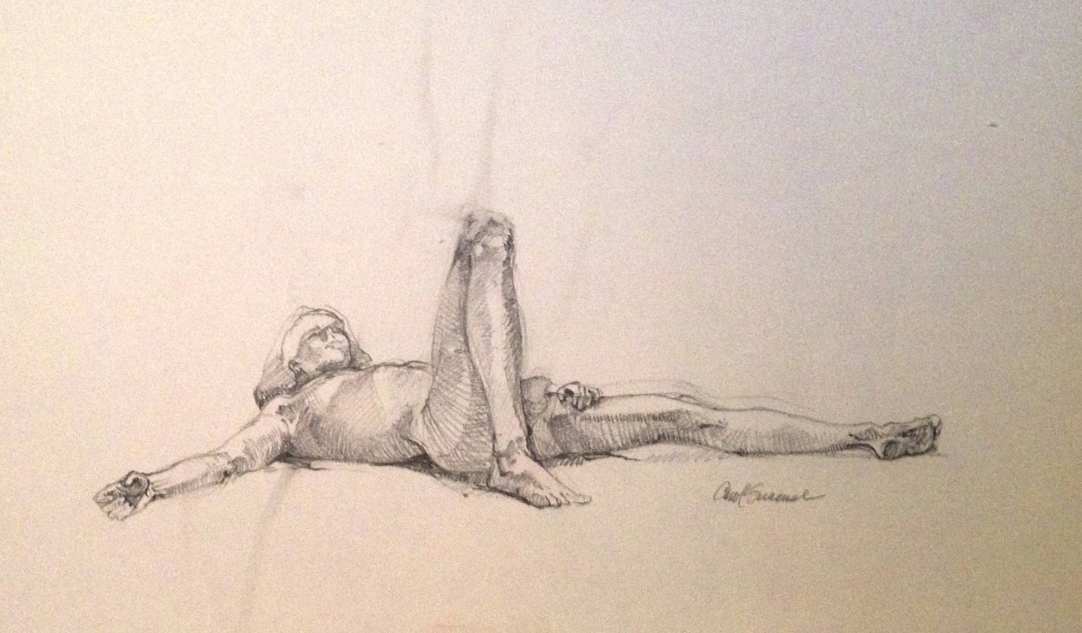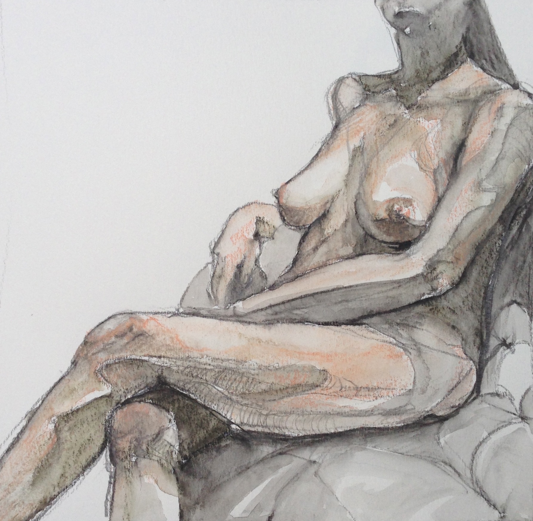 It wasn’t until this past year, in the fall, that I started with the figure again. At Sally’s suggestion, I joined a group of artists on Friday afternoons at the BAS. We rent a room, hire a model and draw and paint together. These next drawings, and paintings are from those afternoon sessions.