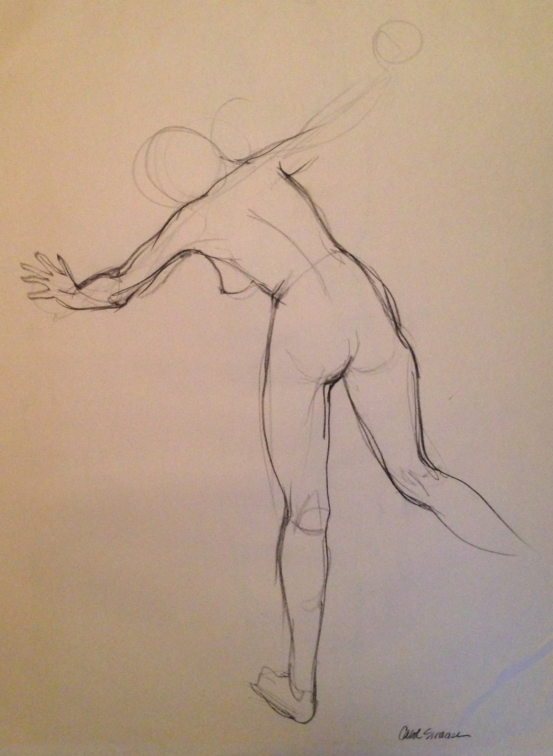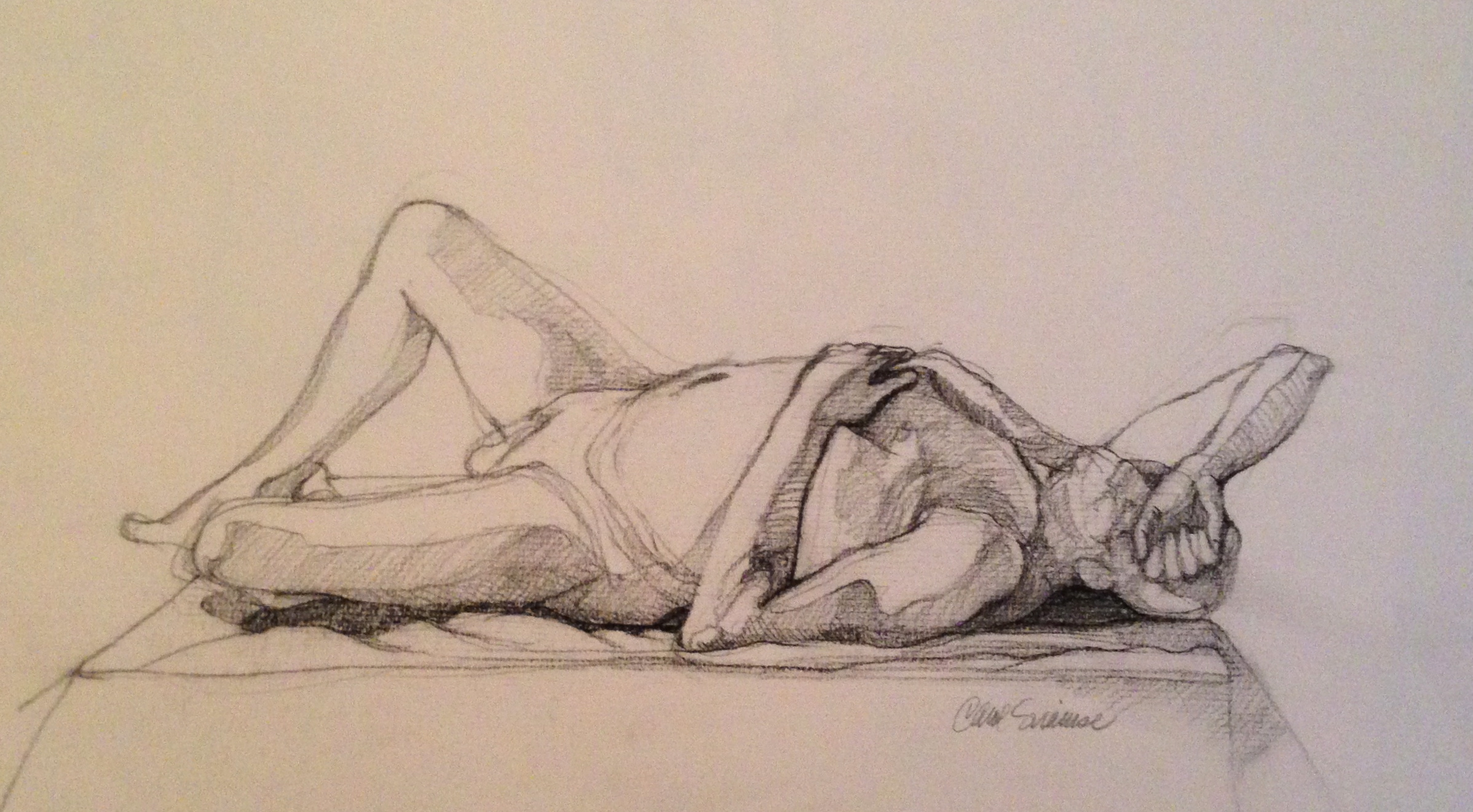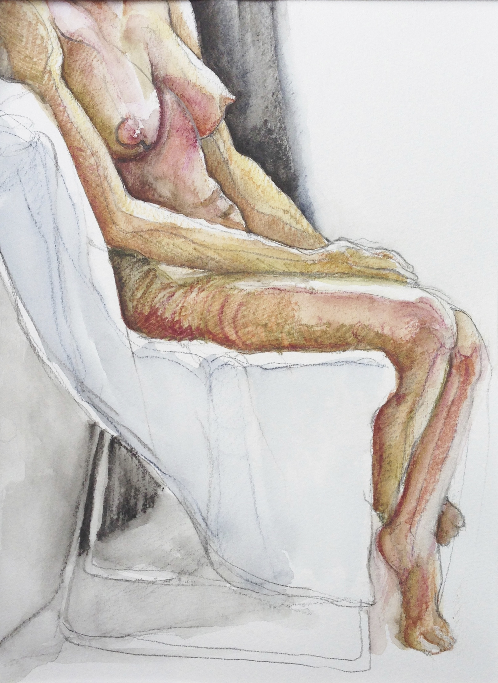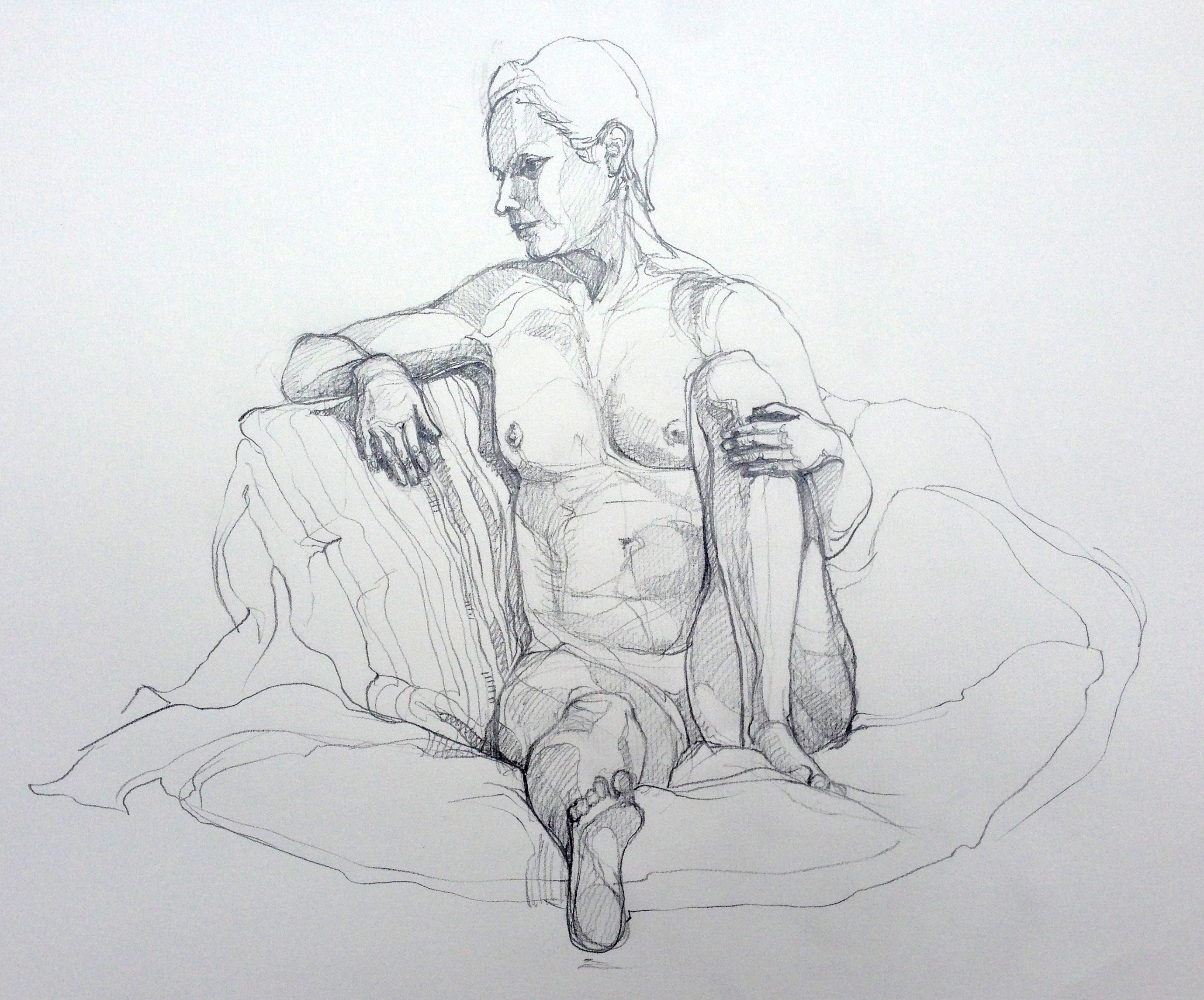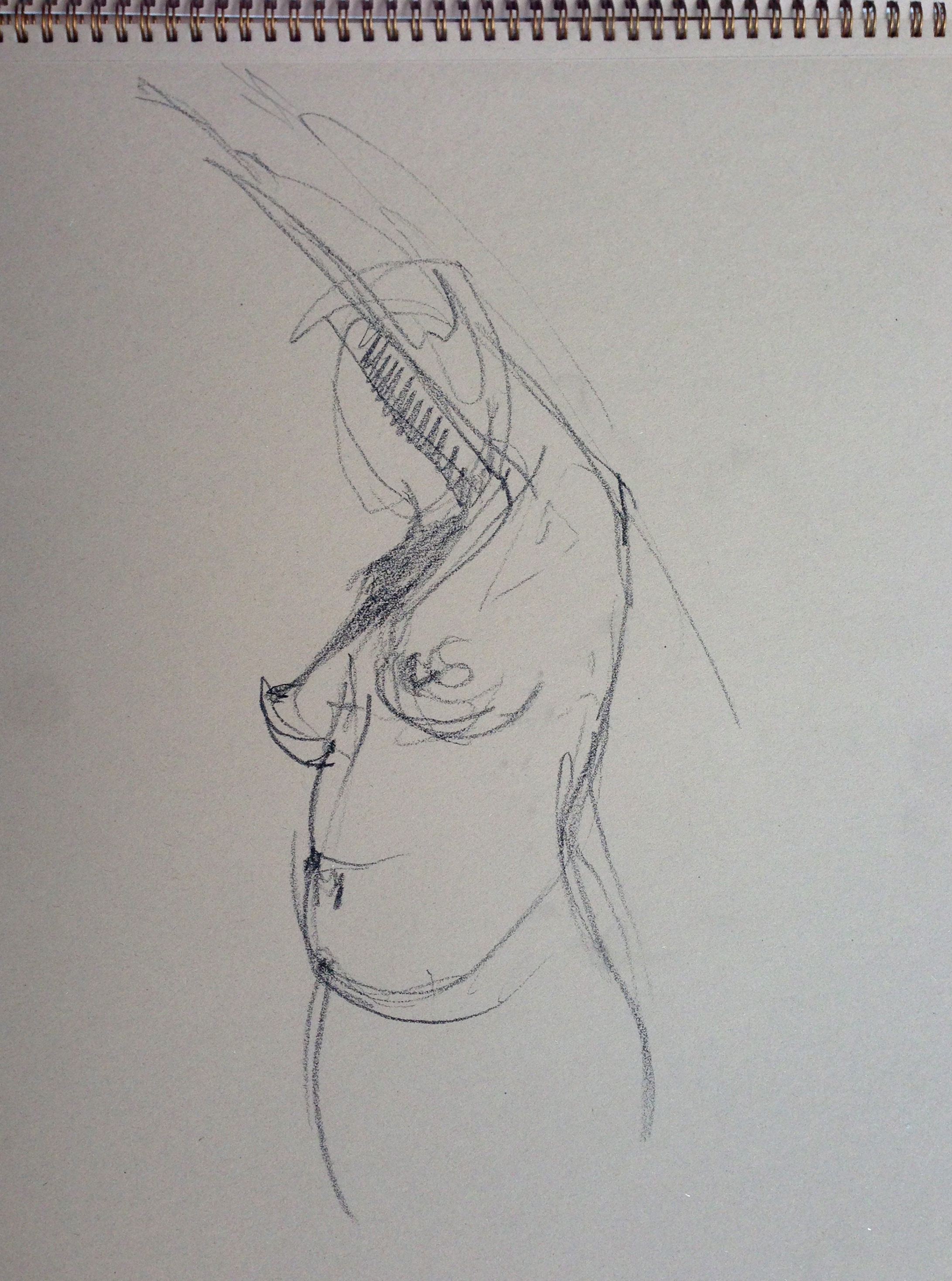 It wasn’t until this past year, in the fall, that I started with the figure again. At Sally’s suggestion, I joined a group of artists on Friday afternoons at the BAS. We rent a room, hire a model and draw and paint together. These next drawings, and paintings are from those afternoon sessions.