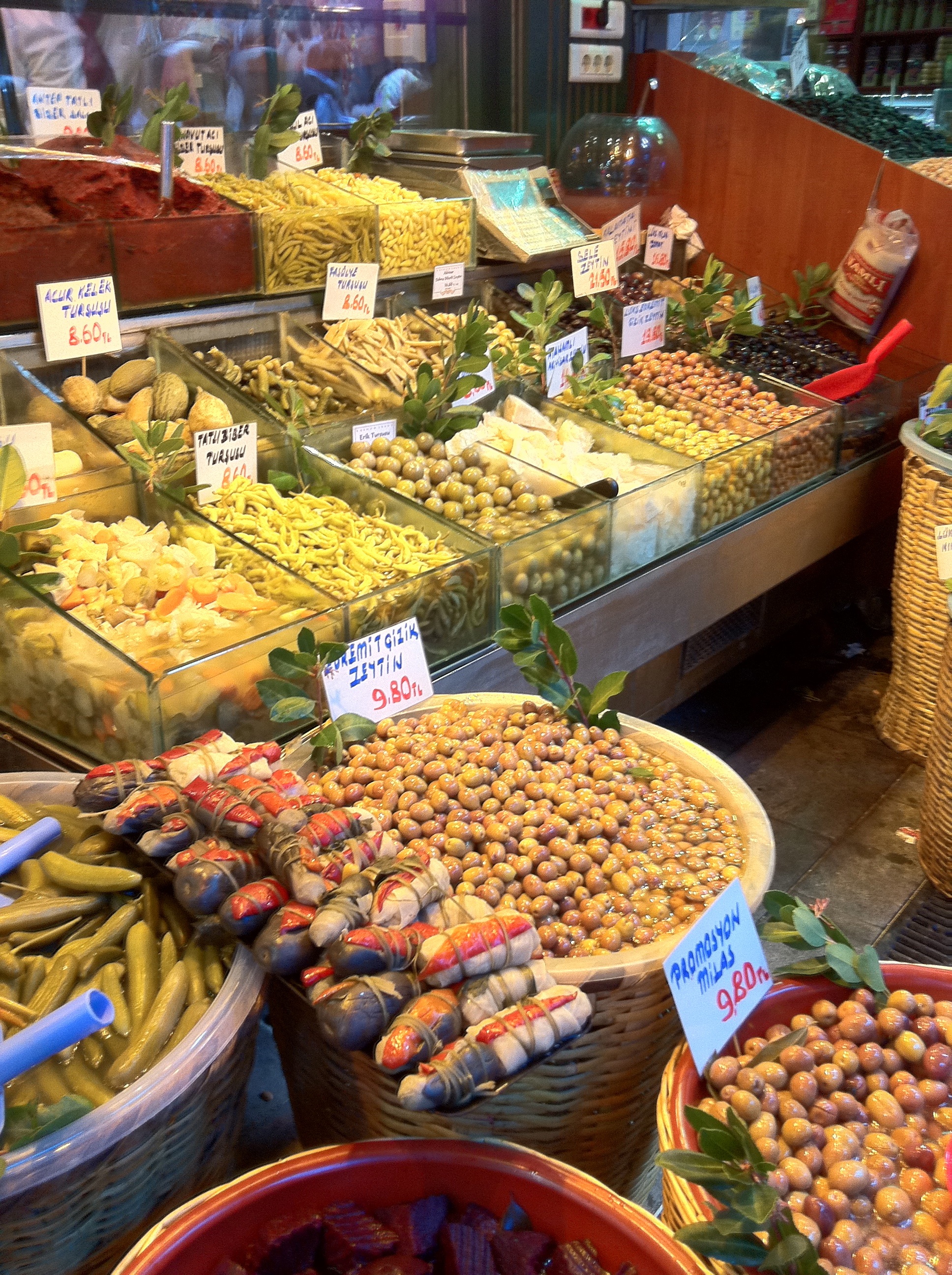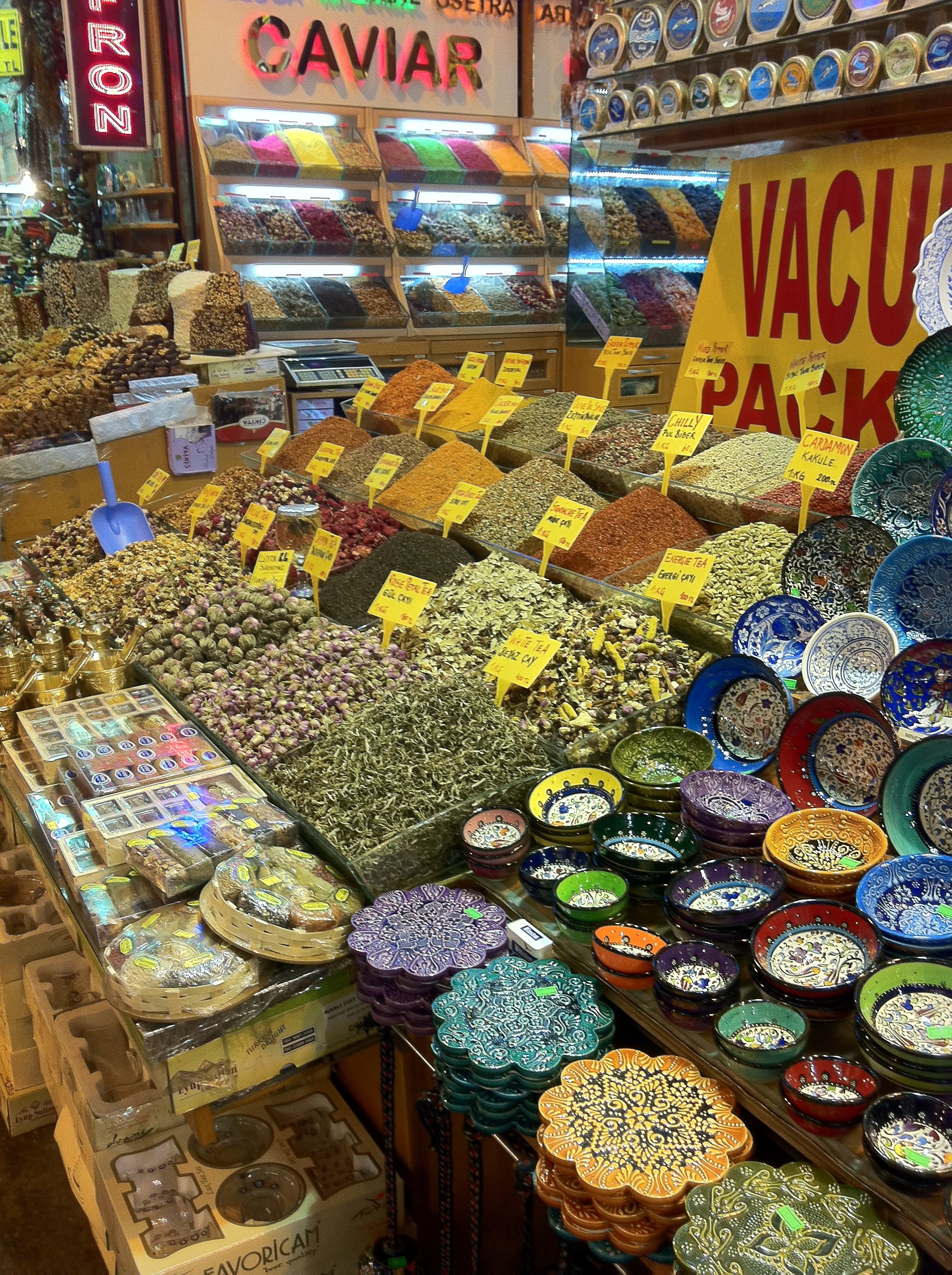 The Grand Bazaar was too much! We spent a few hours there, but could have spent several days and not seen everything!IMG_4686The markets in the shadow of the bridge to Galata were a total surprise.  No tourists there. The buckets are full of pigment for custom-making paint. We had fresh fish cooked on the grills and ate at tables with the fishermen and market workers.