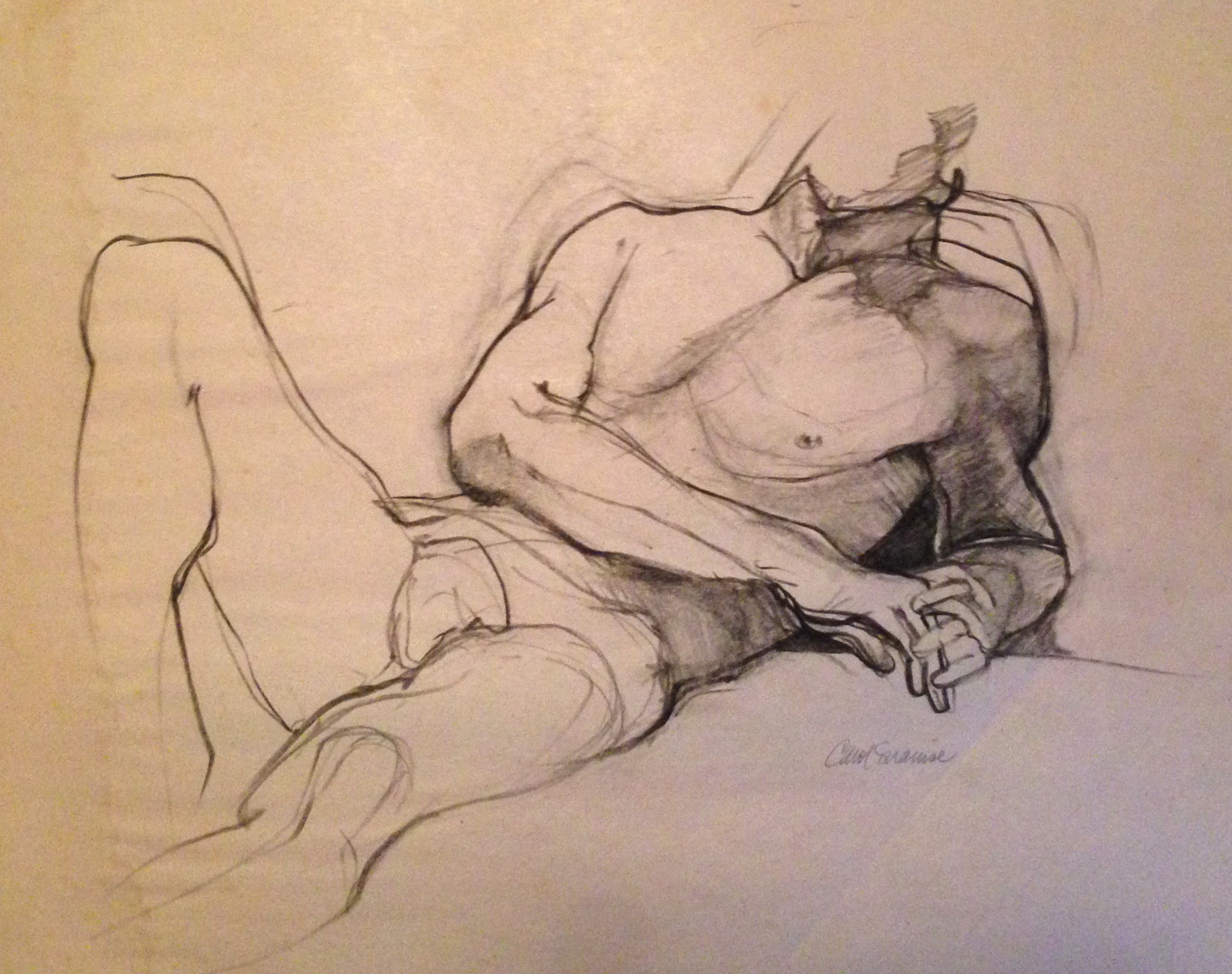 These drawings are from three different periods in my life. First from 1974 when my then husband and I moved from Ithaca, NY to Fredonia with our three year old daughter Cynnie. I hadn’t found a job yet; finding a job as an unlicensed architect, really a designer/draftsperson, was not easy in a small town south of Buffalo. Instead I found a figure drawing class at Fredonia College with professor David Small. He was willing to let me audit, and I loved it. These next few drawings are from that class, 3 hours two afternoons a week. Heaven for a person who had not drawn, except with architect’s tools, since 1964!