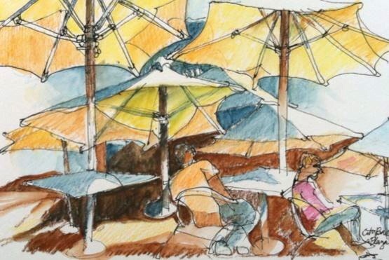 We travelled to the the Northwest corner of Argentina to Salta, a much smaller and very welcoming city, full of more spanish and indigenous influences. This sketch is of the umbrellas at lunchtime. Lunch was relaxed and warm!