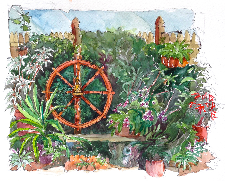 The last garden I painted in I also painted in for the 2014 Artists in Gardens. 8 Paths Garden is unlike any other I have seen. Such a eye and attention to detail. The gardener has an unusual selection of plants, some that I’ve never seen before.