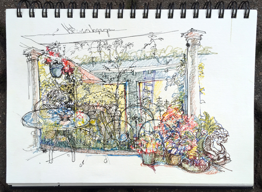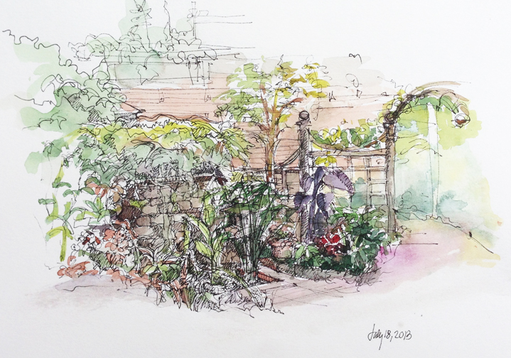 I also like to paint and sketch in my own garden. Here are a few from the last three years of Garden Walks, together with some photos of our garden.