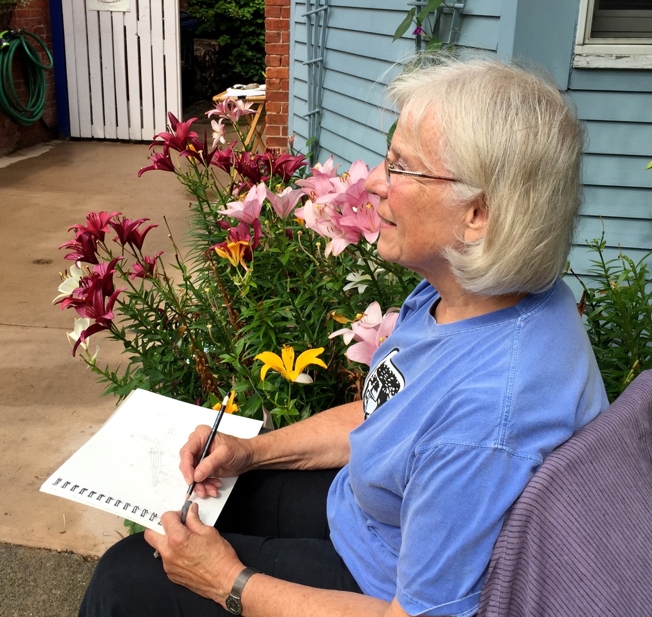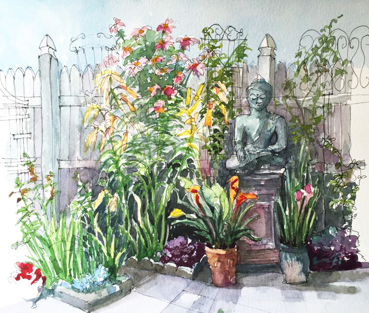 For the past two years, in July, as part of the National Garden Festival here in my home city of Buffalo I have taken part in the Artists in Gardens, a very enjoyable opportunity for local artists to sit in beautiful gardens and paint. These gardens are open to the public the same time each week, Thursdays and Fridays. I painted in four gardens this year and twice in the same garden last year.  I also enjoy sketching and painting in my own garden.