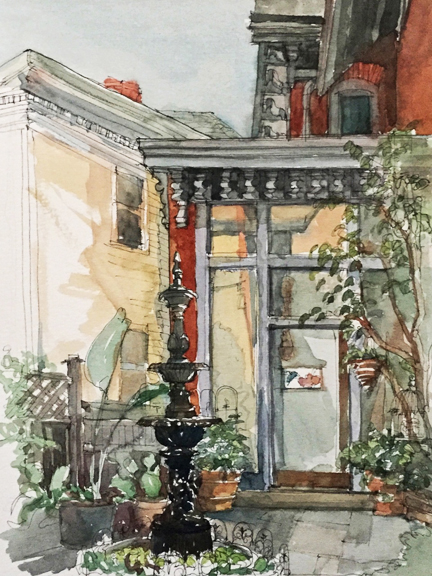 I also painted at Arlan and Dominic’s Garden on Norwood Avenue. Arlan and Dom have been involved in the Garden Walk Buffalo since its inception. They have a wonderful victorian home and a yard full of surprises. As a former architect I was drawn to their back porch and back elevation.