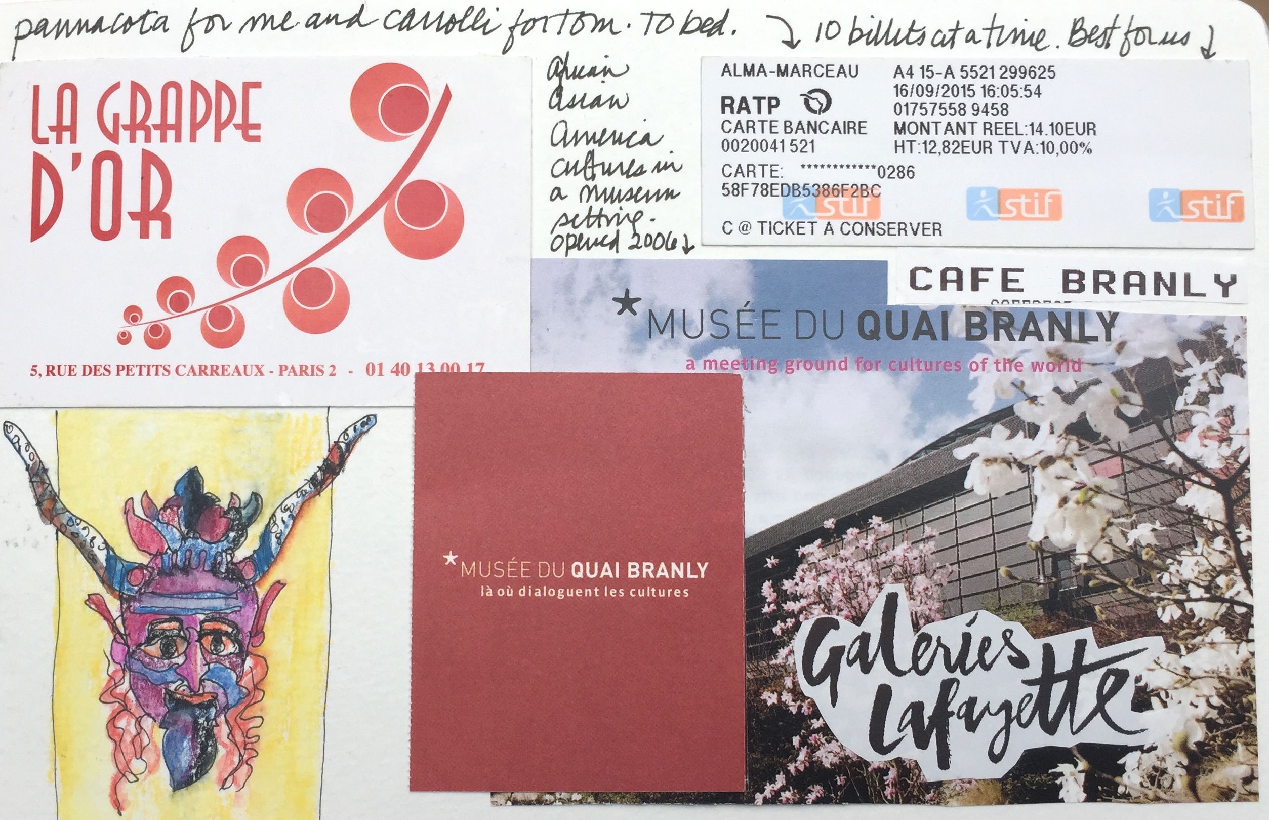 Left is a wonderful Sicilian Restaurant near our apartment, and right is a very quickie after visiting the Musee du Quai Branly. Place de la Contrescarpe at the head of one of our favorite streets, Rue Mouffetard.
