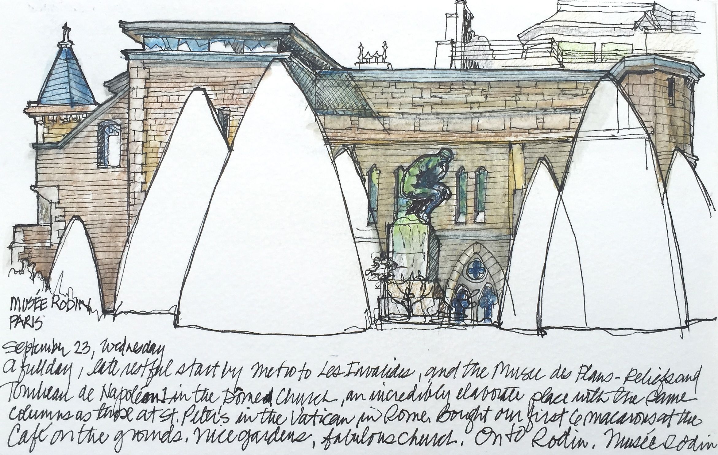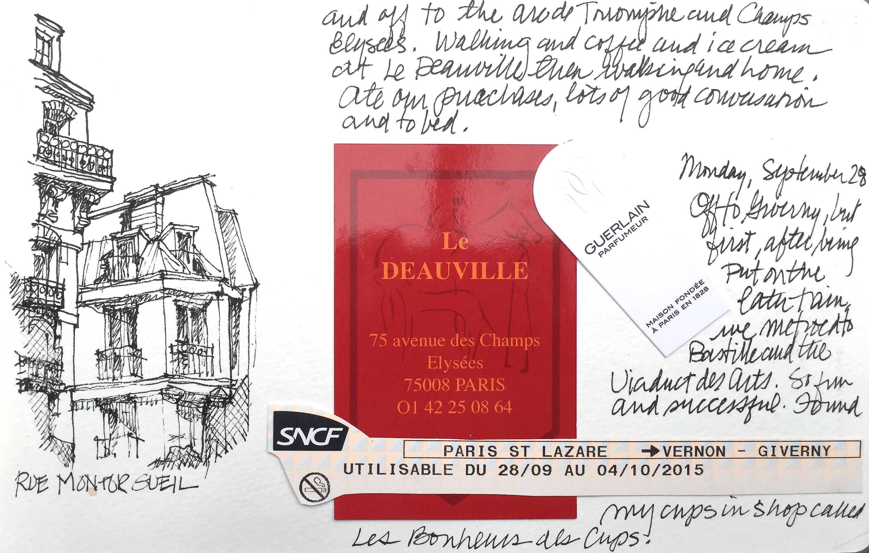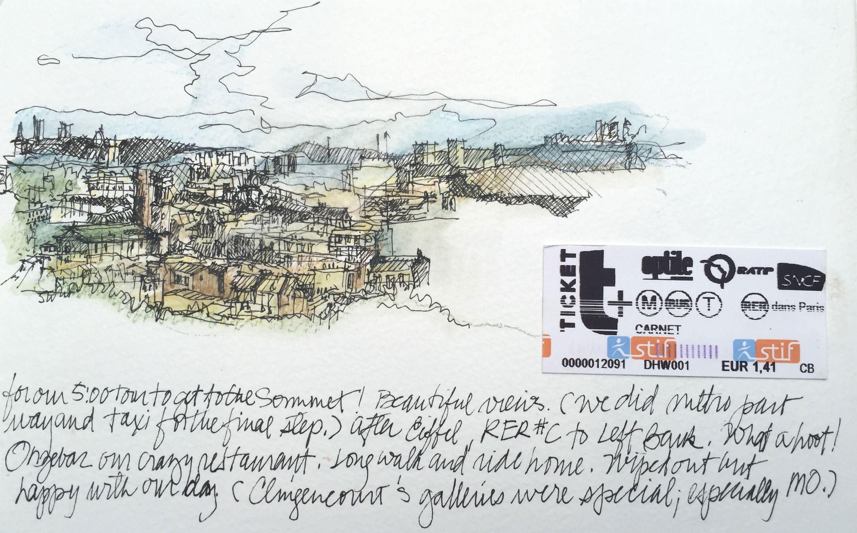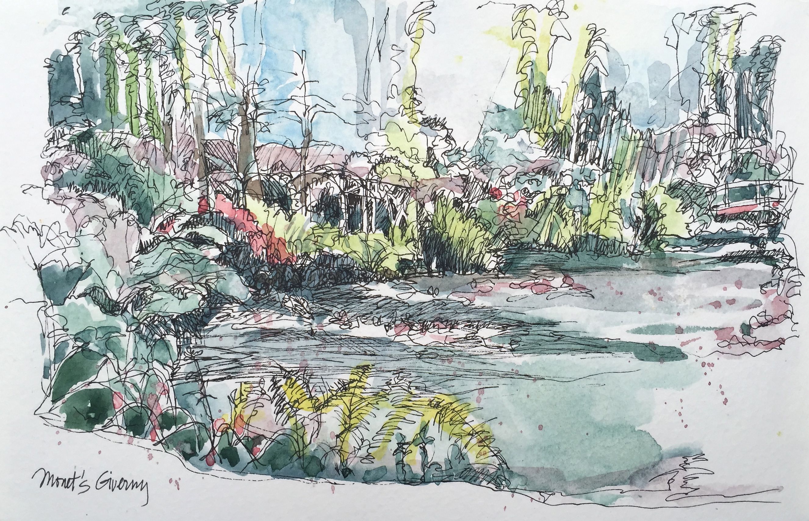 Our only day trip, to Giverney, and a sketch from the rooftop cafe at Musee Picasso.