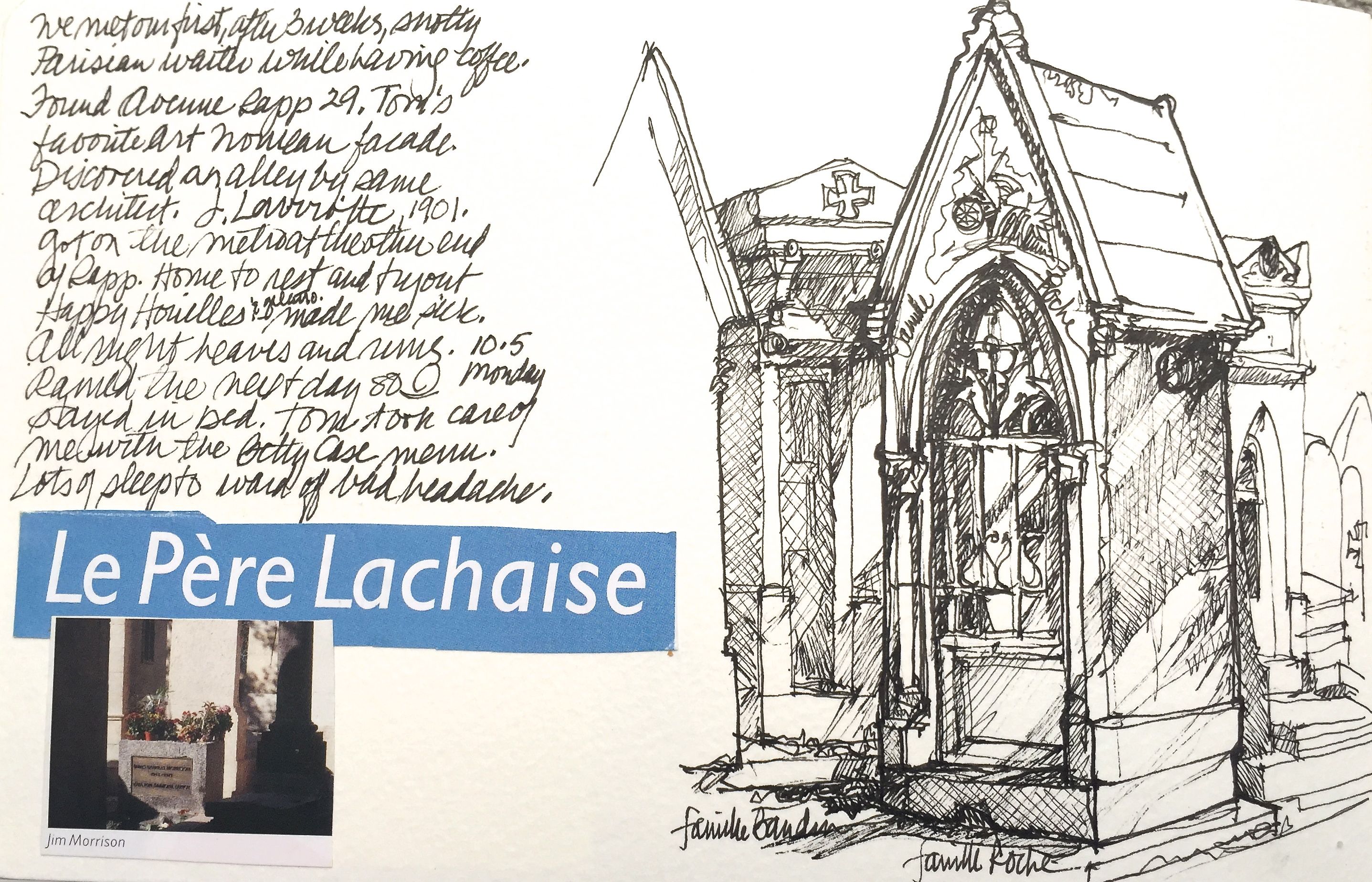 Wandering through the sun dappled Cemetery Pere Lachaise. Quiet except for the gathering at Jim Morrison’s grave. Our view from Cafe de la Paix after being amazed by Opera Garnier.