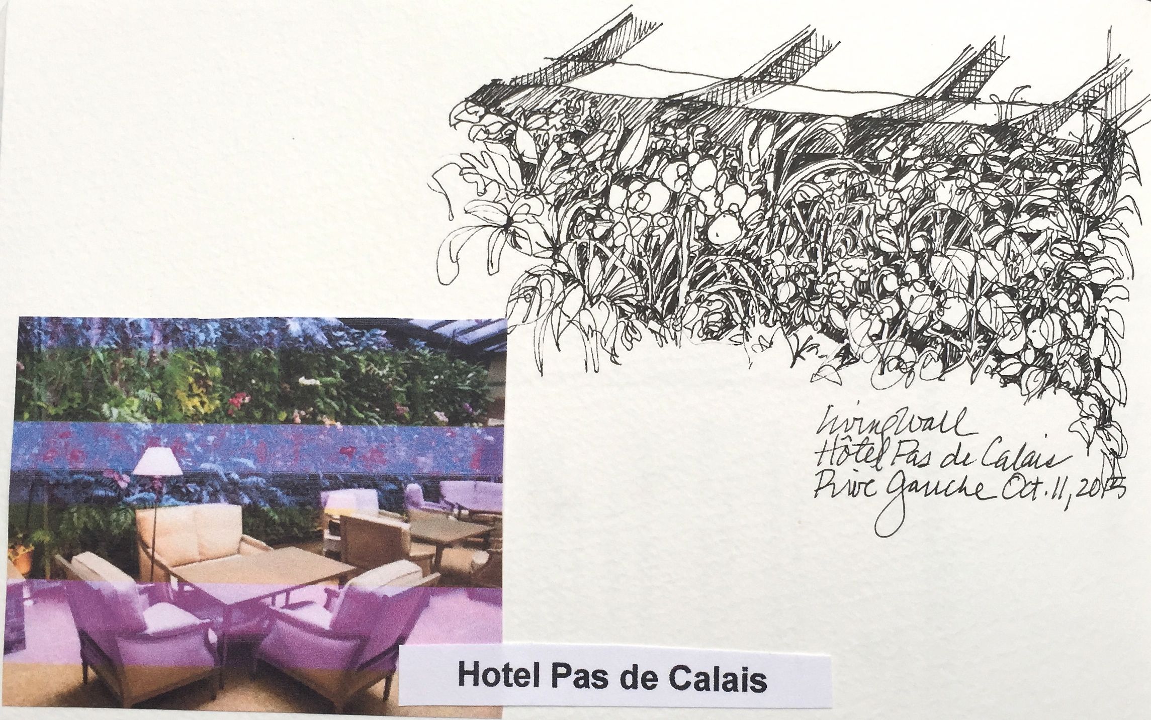 Our last night we stayed in the hotel on the Left Bank that I stayed in with friend Yvonne and her mom, 2001. The Hotel Pas de Calais has been renovated and is perfect, especially the living wall in the lobby.