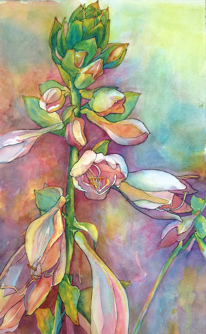 The other juried show I entered was the Fall 2015 Niagara Frontier Water Media Show juried by Barbara Nechis. NFWS is close to my heart. I’m in my second and last year as it’s president.  It is the only Watercolor Society west of the Central New York Watercolor Society in New York State. My two paintings were accepted. Both florals, both with ink and watercolor, therefore considered to be “water media”. One, entitled “Spring Amarylis” is painted on rice paper.  I love rice paper! The other, “Hosta No. 1”, is on watercolor paper, and has been selected as the poster image for this year’s Garden Walk, Buffalo, an honor for me as I am an energetic gardener, and our city garden has been on the Garden Walk, missing one year for construction, since 2002.