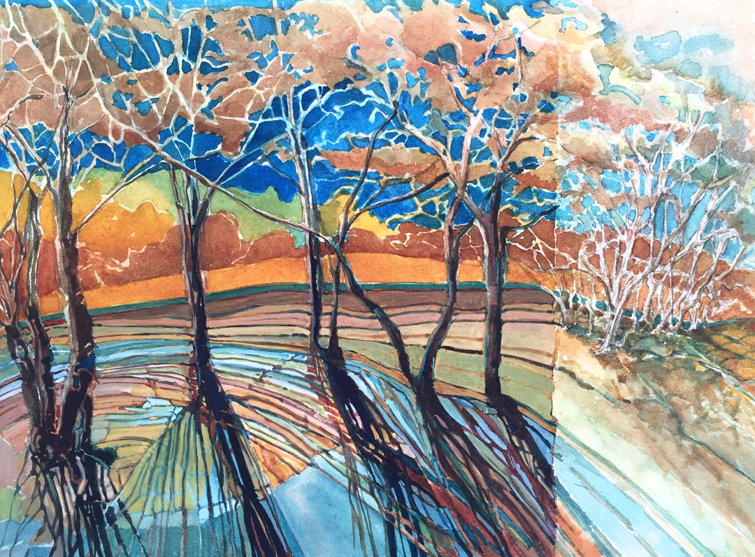 I love to try new ways to work with watercolor and all of the other water media. I am not a young person, though I am a young artist, having really started to get serious about this in the mid 2000’s. Architecture took all my work time and energy for 44 years.  I don’t think I’ll be  able to paint for the same amount of time….as I’d be painting at age 107, but maybe I’ll still be at it!  I’m pretty young at heart!